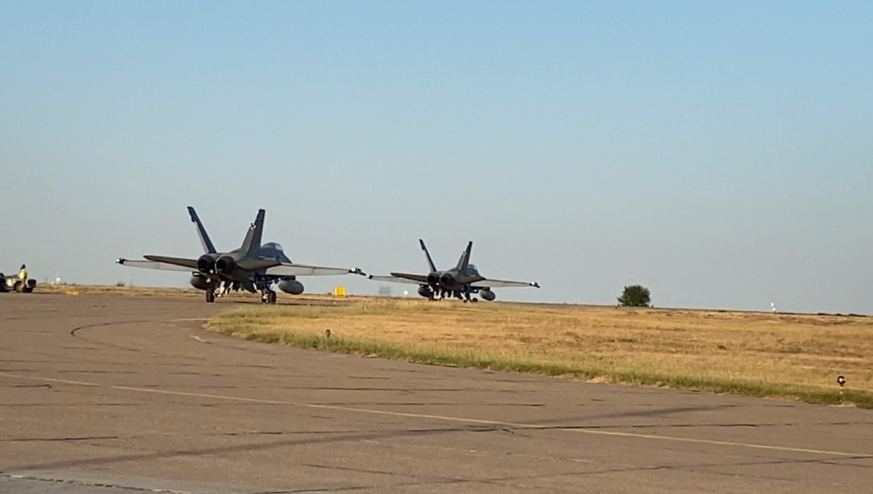 La prueba aérea comenzó con la preparación para despegar en un espacio temporal máximo de 15 minutos como respuesta rápida a una alarma (vuelo de scramble) por parte de dos de los aviones F-18 del Ejército del Aire y del Espacio destacados en territorio rumano.