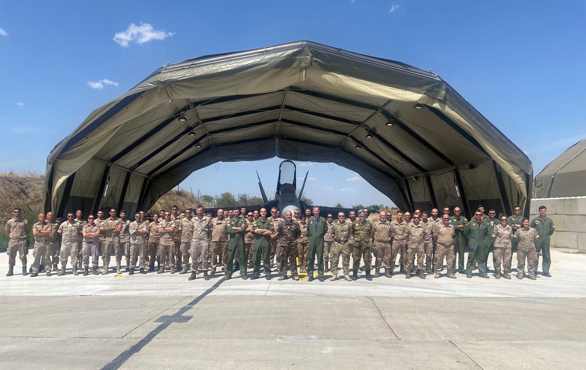 Los miembros del Destacamento “Paznic”, destacados en la base militar Mihail Kogălniceanu (Rumanía), han realizado con éxito su primer vuelo, con F-18 y C-27J Spartan, demostrando su capacidad para cumplir sus cometidos en el marco de la misión de Fortalecimiento de la Policía Aérea, eAP-66, por sus siglas en inglés.
