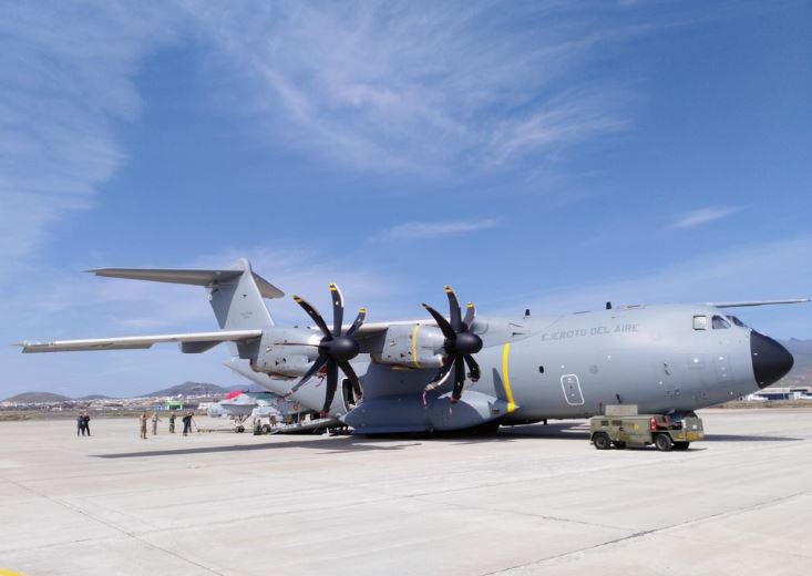 La carga del aparato se realizó en la plataforma de la Base Aéreo de Gando. (foto: Ejército del Aire).