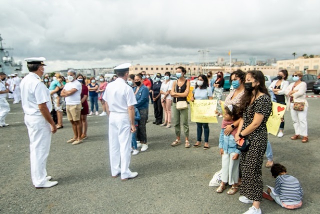 El contraalmirante Lago Ochoa, en el centro de espaldas, recordó el sacrificio de la dotación del “Rayo”, que permanecerá seis meses en la mar, y sus familiares. (foto Antonio Rodriguez Santana)