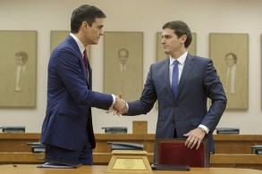 Fotografía: Firma del acuerdo entre Pedro Sánchez y Albert Rivera (PSOE).