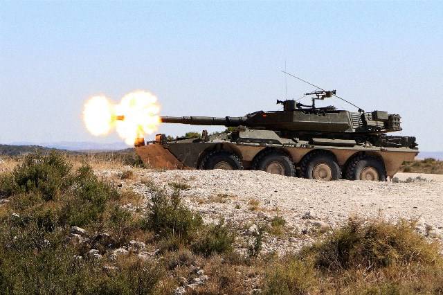 Fotografía: Uno de los Vehículos VRCC Centauro abriendo fuego en el campo de maniobras de San Gregorio durante un ejercicio de preparación previo al despliegue en la Operación Libre Hidalgo (Ejército de Tierra)