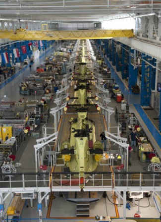 Fotografía. Línea de fabricación de la empresa Boeing del CH-47 en Ridley Park (Filadelfia). Foto: Boeing Helicopters.