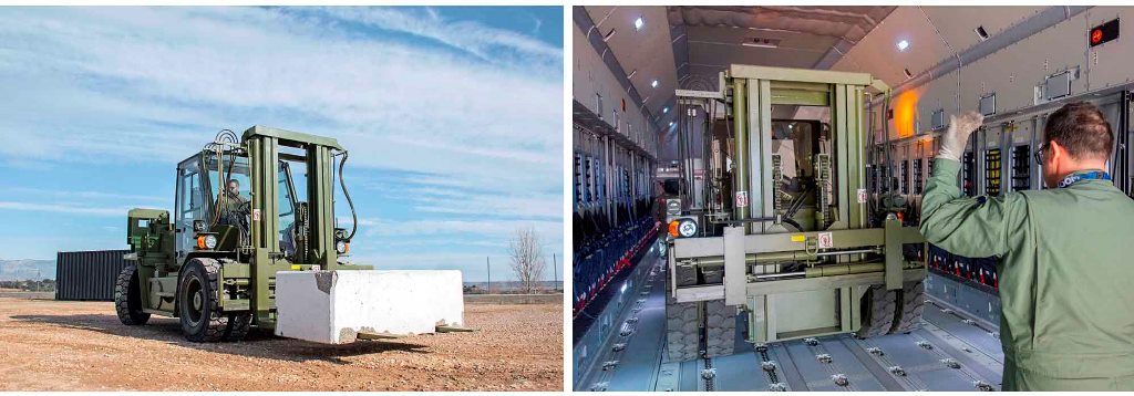 UPLIFTING propone a los ejércitos carretillas y Reach Stacker todo terreno, aerotransportables, y ATEX, entre otras características, ideados y diseñados para ser usados en condiciones de despliegue, teniendo en cuenta las situaciones más adversas. Su gama va de las 6 hasta las 35 toneladas.