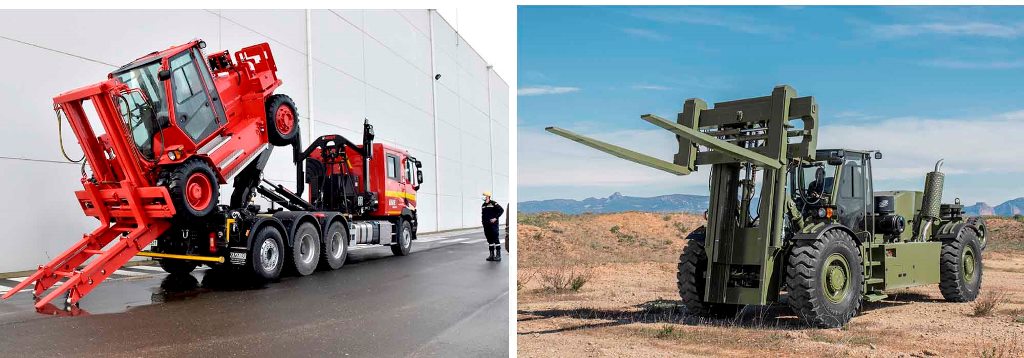 Carretillas de 5 a 25 toneladas (Aerotransportables, Atex. Posibilidad de blindaje, auto cargable en Vempar, Todo terreno, con capacidad de vadeo).
