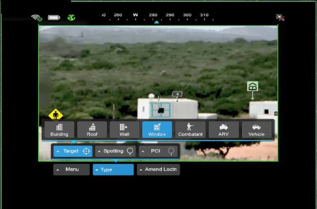 El sensor detecta, identifica, y clasifica el blanco y en el mismo acto realiza una petición de fuego, que es recibida en tiempo real por todos los miembros de la red, en los terminales de gestión de fuego. El tirador dispone en su mira la simbología de realidad aumentada la posición en coordenadas pixel del blanco desde su posición.