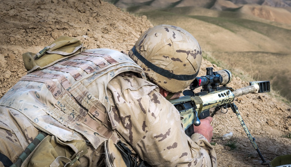 Tirador del Ejército de Tierra en Afganistán con fusil Barret (Estado Mayor de la Defensa)