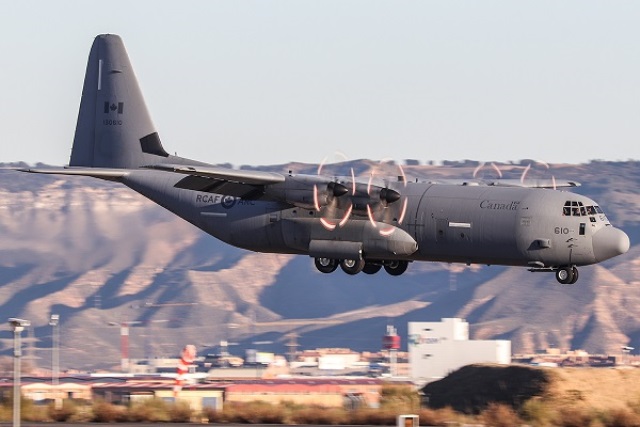 Un CC-130J-30 “Super Hercules” también apoyo el repliegue de la ATF Romania. (Foto: Rubén Galindo)