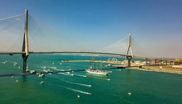 Y que mejor momento para recordar a lo largo de la historia futura y vivida la captación de las imágenes que publicó el Ministerio de Transportes, Movilidad y Agenda Urbana, en forma de vídeo elaborado por la empresa Puerto Drones 5.0 en el momento que el buque cruzaba los puentes de la constitución de 1812 “La Pepa” y Ramón de Carranza para regresar desde el muelle Ciudad de Cádiz hasta su lugar de atraque habitual en la Base Naval de La Carraca. Las fotografías e imágenes fueron tomadas por los operadores de drones José María Ricardi y Moisés Sanz Peñalosa ambos pilotos de drones certificados desde el año 2014 y que muestran unas grandes habilidades de manejo operacional en estas aeronaves multirrotor.