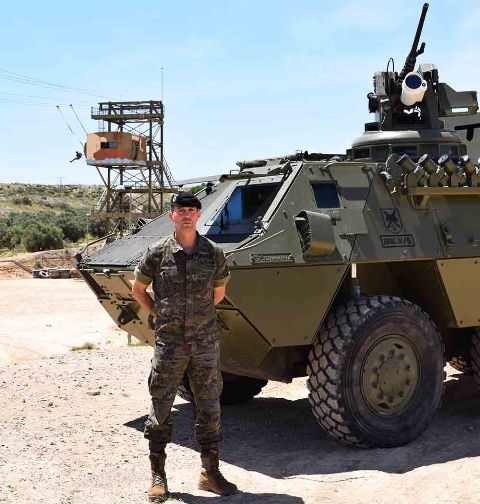 ·El coronel Sánchez-Tembleque delante de uno de los BMR M1. Foto: Regimiento “Zaragoza” nº 5.