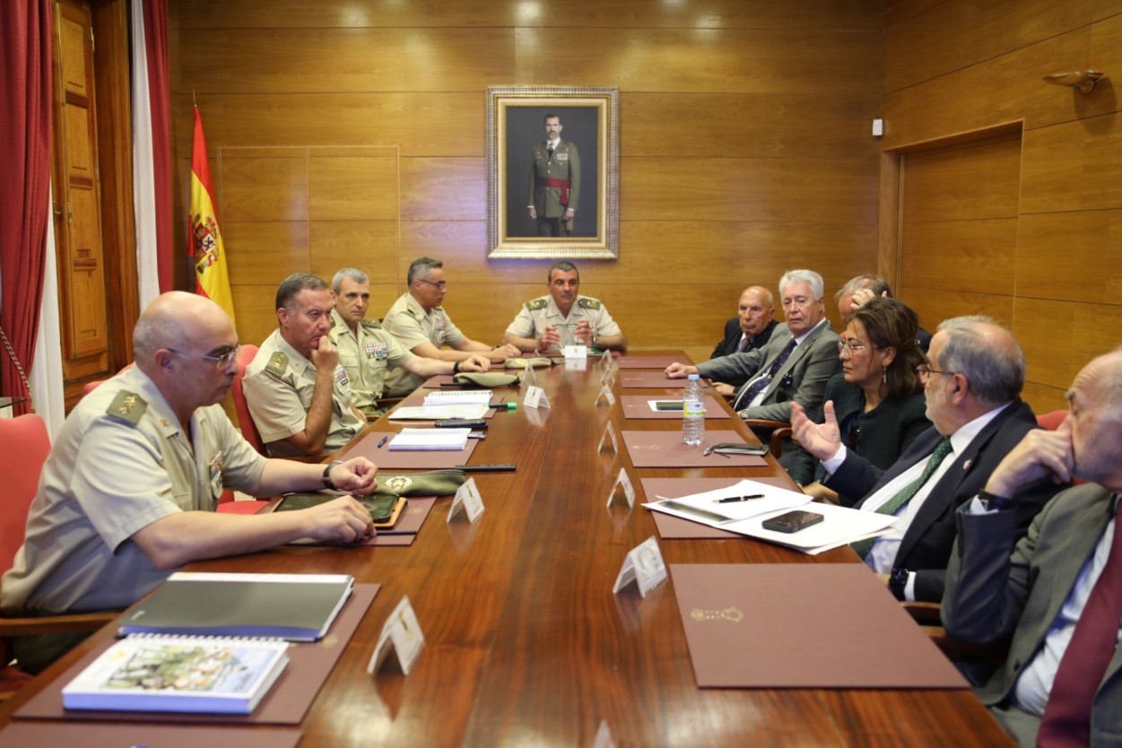 Los embajadores de la Marca Ejército, José Antonio Hernandez Reja, José Juan Sánchez Tinoco, José Carlos Marrero González, Eva Cervera Arteaga, Eligio Hernández Gutiérrez, Juan José Laforet Hernández, Valeriano Weyler González y Francisco Javier Taibo Arias, han visitado el Palacio de la Capitanía General, sede del Mando de Canarias, que acogió una jornada informativa presidida por el teniente general Julio Salom.