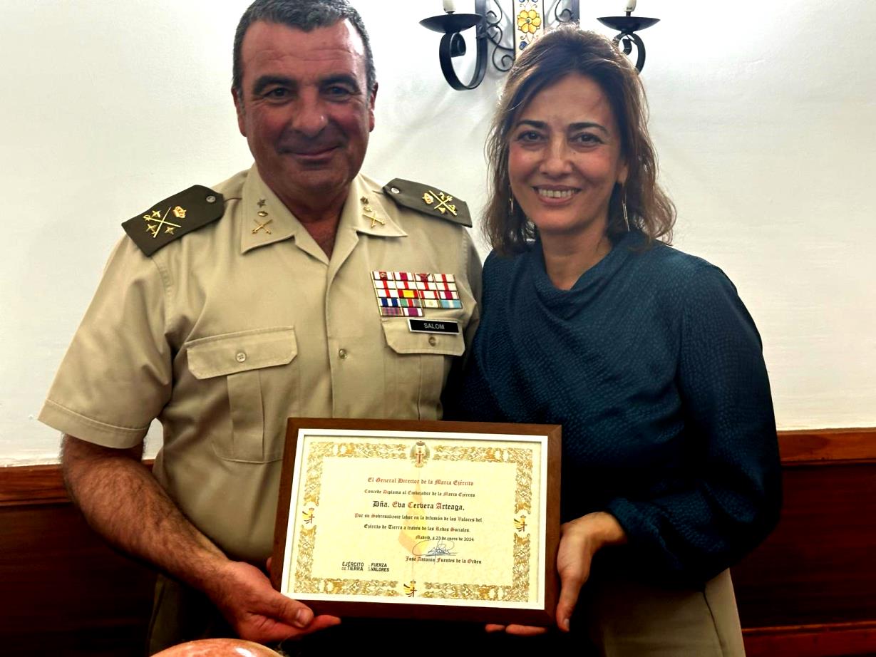 El teniente general Julio Salom entrega a la directora de Grupo Edefa un reconocimiento por su labor como Embajadora de la Marca Ejército.
