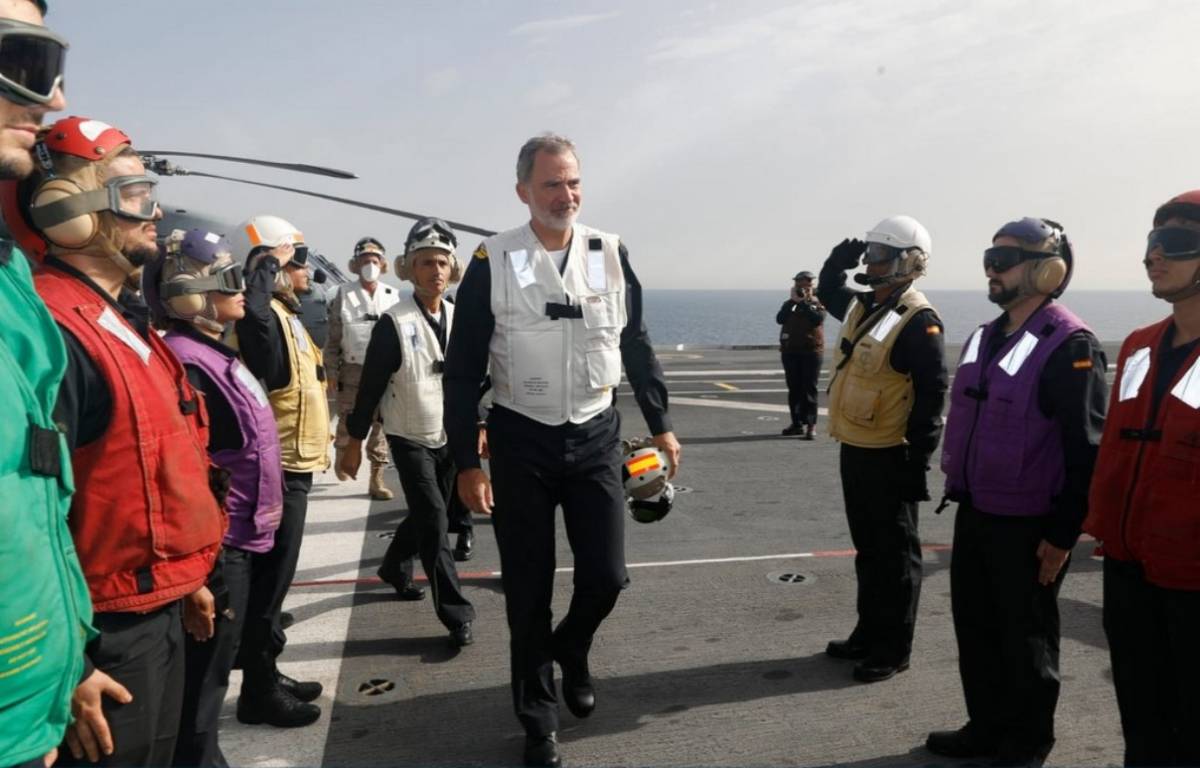 A bordo del mayor buque de la Armada, Felipe VI estará acompañado, además de por el Almirante Jefe de Estado Mayor de la Armada, almirante general Antonio Piñeiro Sánchez, por las principales autoridades autonómicas y locales, el Presidente de la Generalitat de Cataluña, Salvador Illa, el Delegado del Gobierno en Cataluña, Carlos Prieto Gómez y el alcalde de Barcelona, Jaume Collbon.
