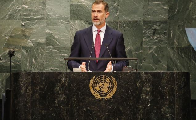 Durante su intervención el pasado lunes con motivo de la Reunión de Alto Nivel sobre Refugiados y Migrantes y la Apertura del Debate General del 71º Período de Sesiones de la Asamblea General de Naciones Unidas, su Majestad el Rey se refirió a la situación actual del conflicto sobre Gibraltar. Concretamente empezó recordando que Gibraltar es la única colonia existente en el territorio europeo y en cumplimiento del mandato de Naciones Unidas invitó al Reino Unido “a poner fin a ese anacronismo con una solución acordada entre nuestros dos países que restablezca la integridad territorial de España y resulte beneficiosa” para la población de la colonia y del Campo de Gibraltar.