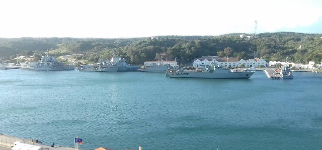 ·El HMS “Enterprise” saliendo de la Bahía de Mahón. Foto: SNMCMG2.