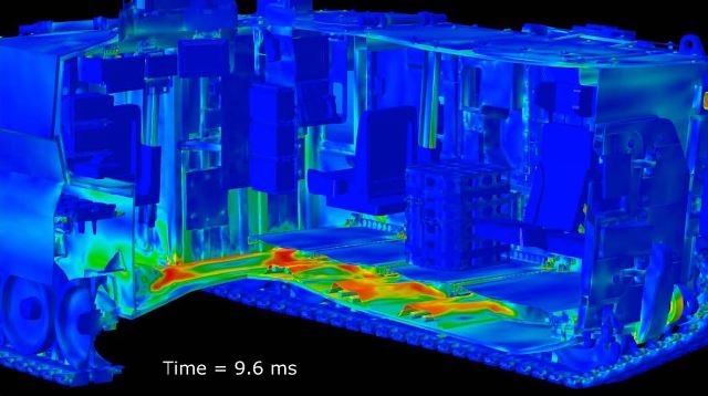Cálculo del efecto de una mina en un blindado simulado por la compañía (SASCorp)