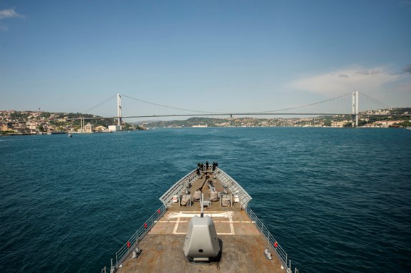 En este sentido, el último navío de la US Navy que ha transitado por los Estrechos de Dardanelos y Bósforo, camino del Mar Negro ha sido el crucero portamisiles, de la clase “Ticonderoga”, USS “Vella Gulf” (CG 72). (Julio Maíz Sanz)