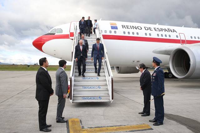Fotografía: El presidente del Gobierno a su llegada a Colombia en Airbus A310 del 45 Grupo de Fuerzas Aéreas (Presidencia del Gobierno).