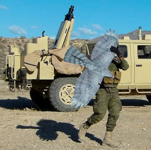 Tiene, para dificultar su localización visual y hacer que la identificación por parte de quienes puedan ser su objetivo, aspecto de ave rapaz, con un tono general, alas y hasta plumas en sus tres extremos. Todo ello, unido a un bajo ruido de su propulsor, hace que sea una aeronave especialmente discreta; sobre sus detalles, decirles que tiene un peso de 2,6 kilogramos contando su carga útil, se lanza a mano y aterriza en el suelo sobre su propio fuselaje.