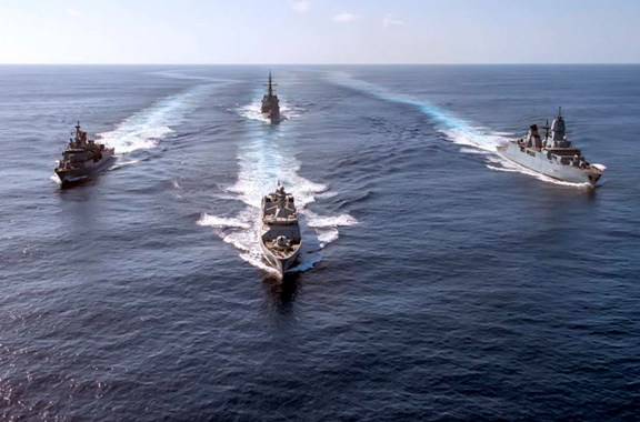Fotografía: Los cuatro buques navegan en formación durante el PASSEX (Ministerio de Defensa español)