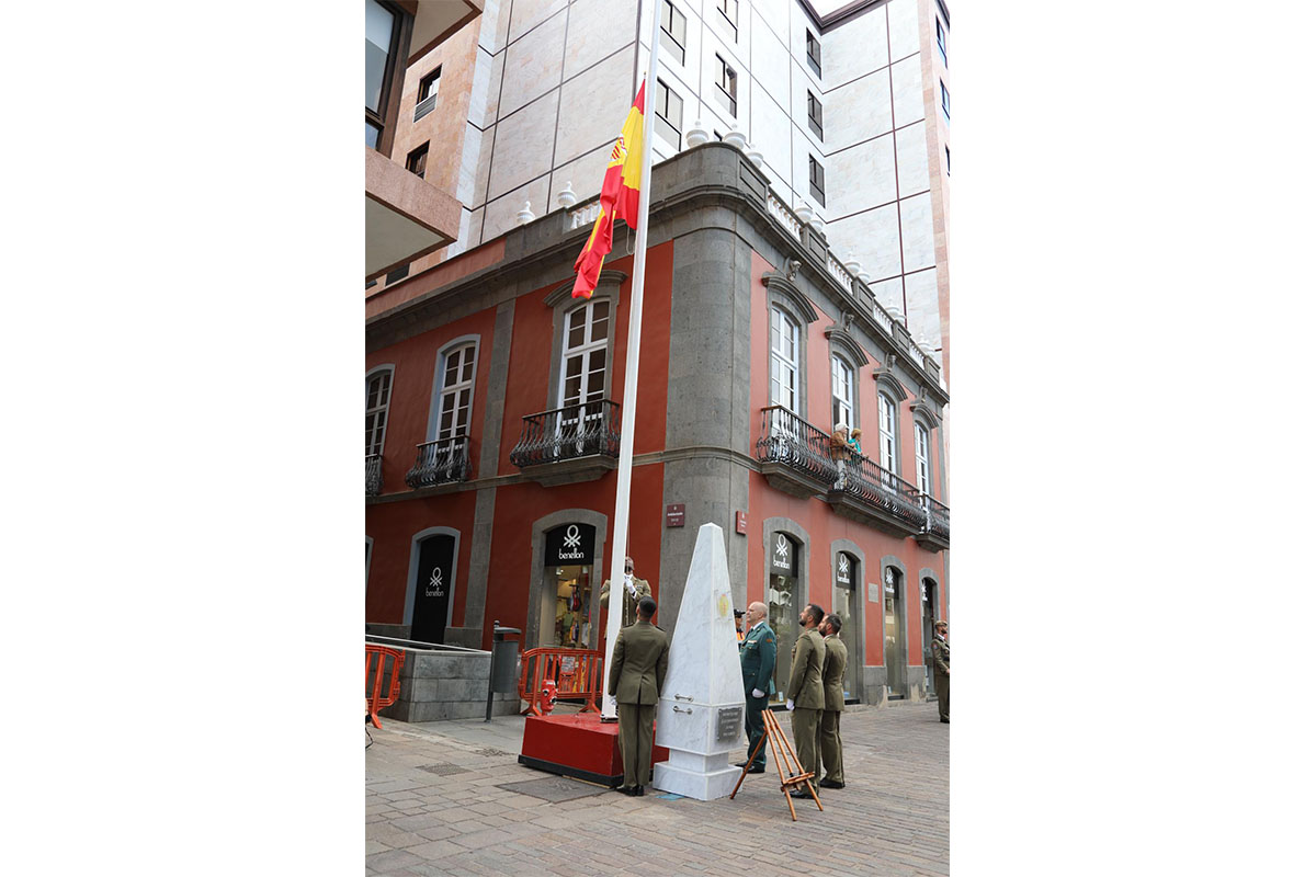 El General Jefe de Estado Mayor del Mando de Canarias, Luis Cortés Delgado, quien presidió el acto, pasó revista a la formación compuesta por personal del Regimiento de Infantería Tenerife 49, el Batallón de Helicópteros de Maniobra VI, la Agrupación de Apoyo Logístico 81 y la Guardia Civil. Posteriormente, se hizo lectura de la efeméride y se procedió a realizar el Arriado de Bandera.
