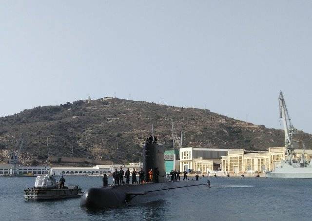 Fotografía: El submarino “Mistral” en su base, el Arsenal de Cartagena. Foto: Armada.