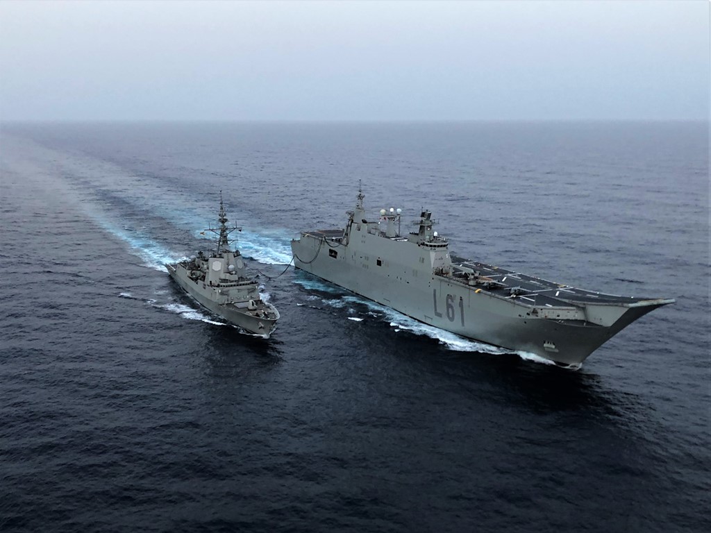 La fragata Blas de Lezo y el Juan Carlos I durante la primera misión operativa de este (Armada)