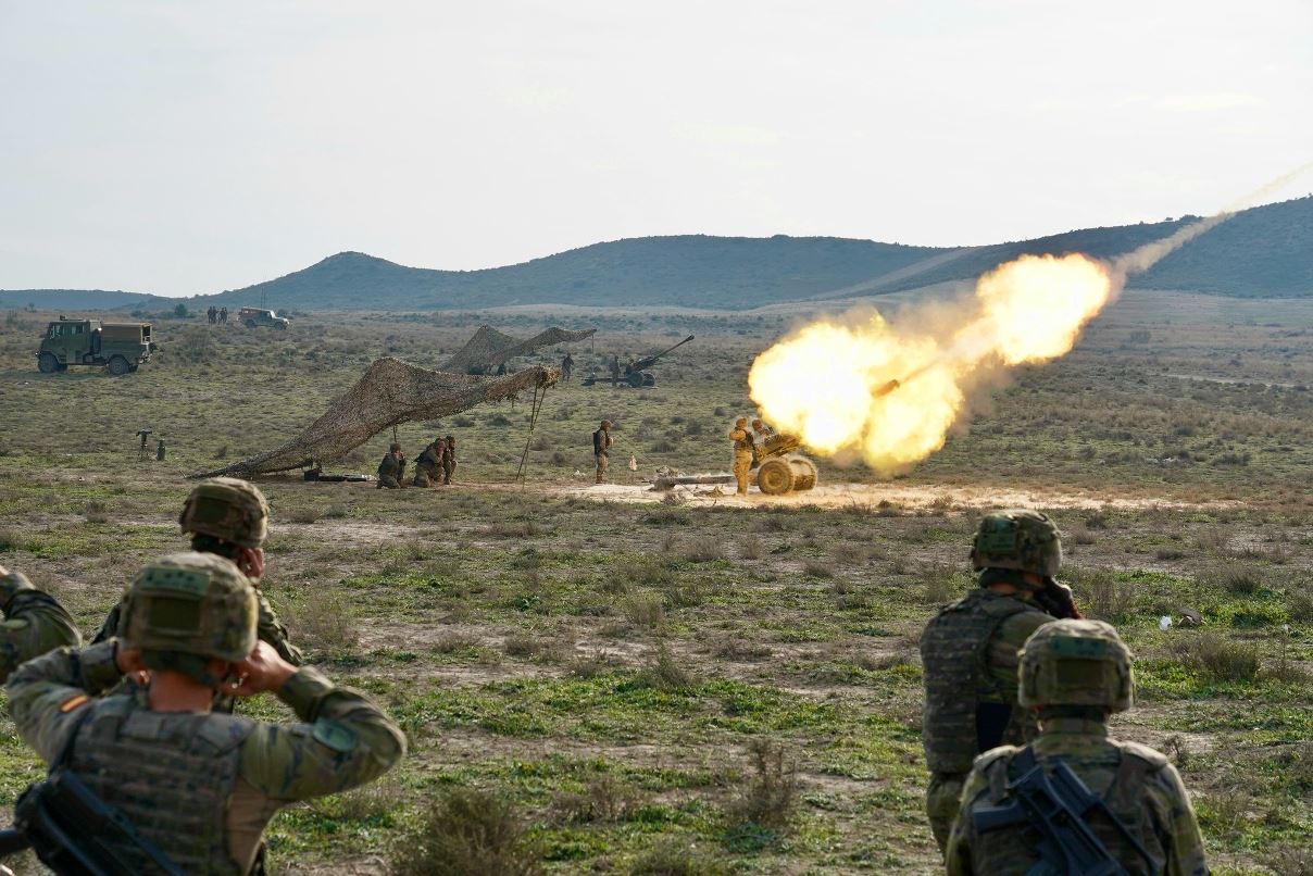 Acciones de fuego de artillería durante la visita del Teniente General Salom. (Ejército de Tierra)