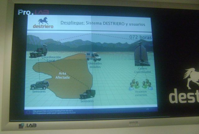El pasado día 9 tuvo lugar en las instalaciones de Thales Programas en Madrid una demostración final de DESTRIERO, una herramienta de ayuda a la toma de decisiones para la reconstrucción tras catástrofes naturales o provocadas por el hombre. A la presentación final acudieron por parte española representantes de Aeropuertos Españoles y Navegación Aérea (AENA), la Unidad Militar de Emergencias (UME) y la Unidad Médica de Aeroevacuación (UMAER) del Ejército del Aire.