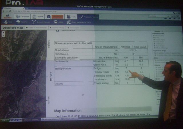 En la presentación se pudo comprobar como el modelo de datos de DESTRIERO es capaz de calcular en escasos segundos el mejor plan de reconstrucción analizando el estado de las infraestructuras afectadas, las prioridades en términos de redes o personas afectadas o incluso el presupuesto disponible.