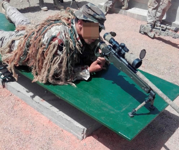 ·Spotter y tirador de precisión de la FGNE abriendo fuego a través de una tronera.