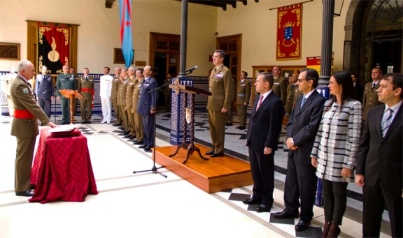 (defensa.com) El teniente general Pedro Galán ha tomado posesión como jefe del Mando de Canarias (MCANA), en una ceremonia presidida por el JEME, general de ejército Jaime Domínguez Buj, celebrada en el Palacio de Capitanía General de Canarias. El teniente general ha sido nombrado jefe del Mando de Canarias por el Real Decreto 84/2014, a propuesta del ministro de Defensa y previa deliberación del Consejo de Ministros en su reunión del 7 de febrero de 2014.