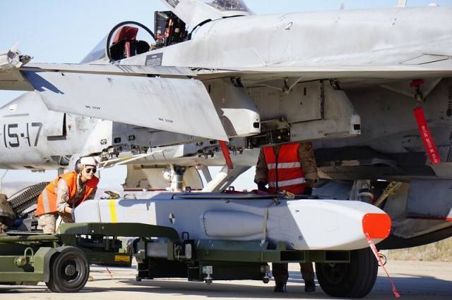 Fotografía: Armeros del Ejército del Aire en proceso de montar un misil TAURUS en un E/F-18M del Ala 15.(foto Ejército del Aire)