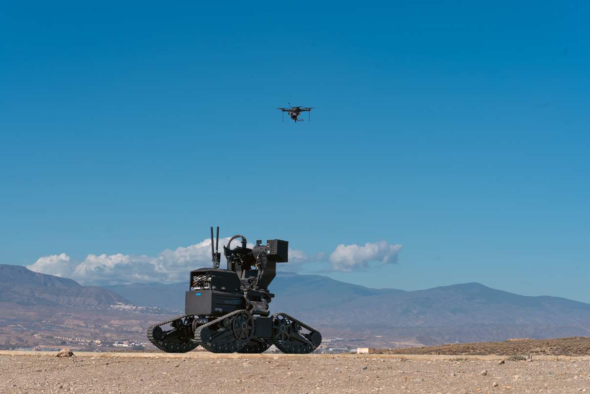 Además, durante el ejercicio, el UGV contó con el apoyo de un dron como relé de comunicaciones, lo que permitió al operador controlar el robot desde una mayor distancia al contar con un mayor campo de visión.
