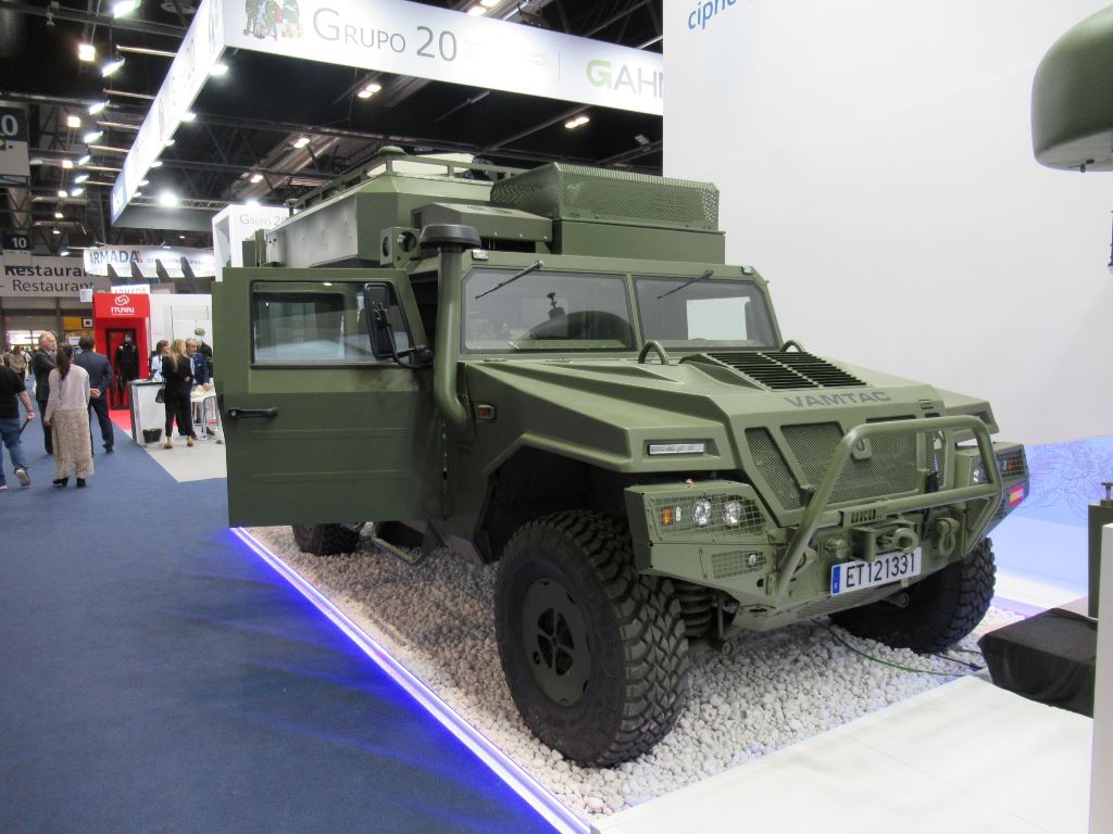 En primer lugar, el propio estand de Urovesa mostraba dos VAMTACs, el vehículo configurado para operaciones especiales del que informamos en exclusiva días atrás y un vehículo bivalente del Ejército de Tierra, además del VAM TL más ligero.