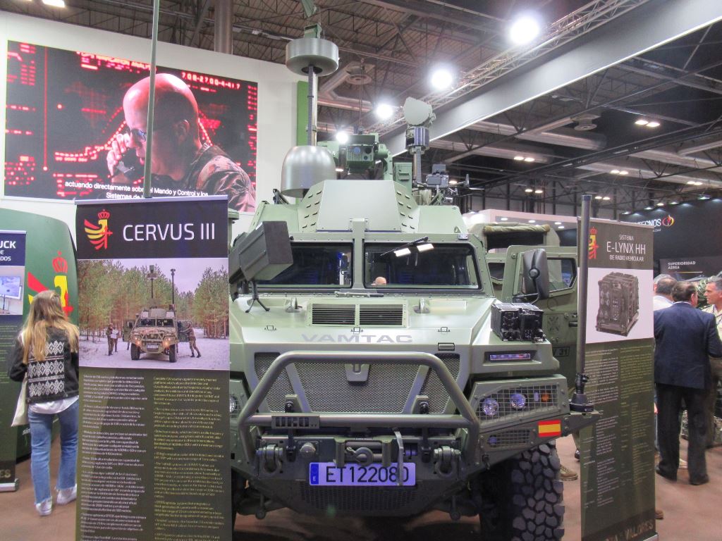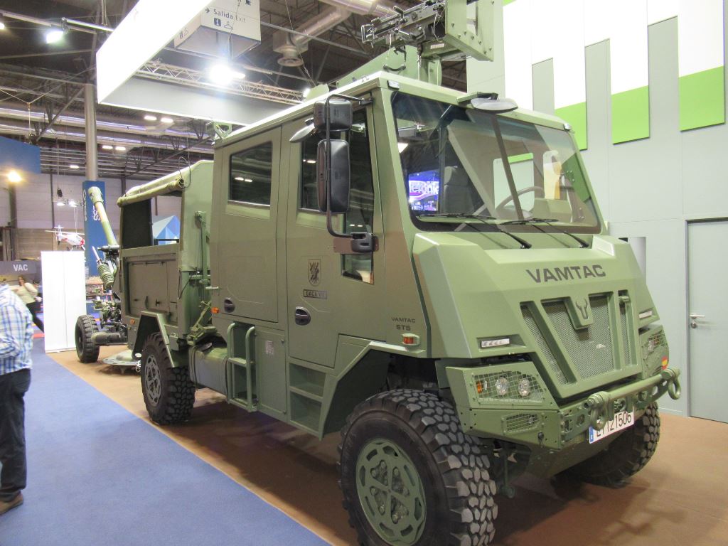 En el estand institucional del Ejército de Tierra se podían encontrar un VAMTAC ST5 del REW 31 de guerra electrónica configurado según el programa CERVUS III y un SK95 tractor de artillería con el obús Light Gun incluido.