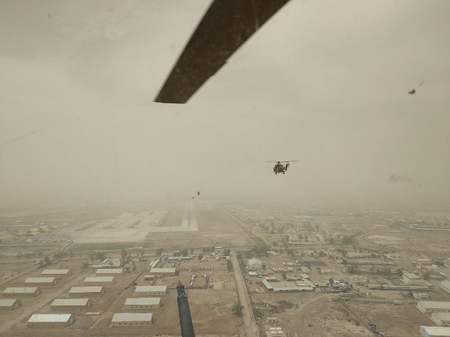 La Unidad de Helicópteros (UHEL) del ejército de Tierra que se integrará en la operación “Inherent Resolve”, se encuentra ya en Taji (Irak), donde llegó volando desde Camp Buehring (Kuwait). El pasado lunes finalizó así el despliegue de la TF Toro (denominación de la agrupación de helicópteros españoles en la Coalición contra el Daesh) en Taji, Irak.