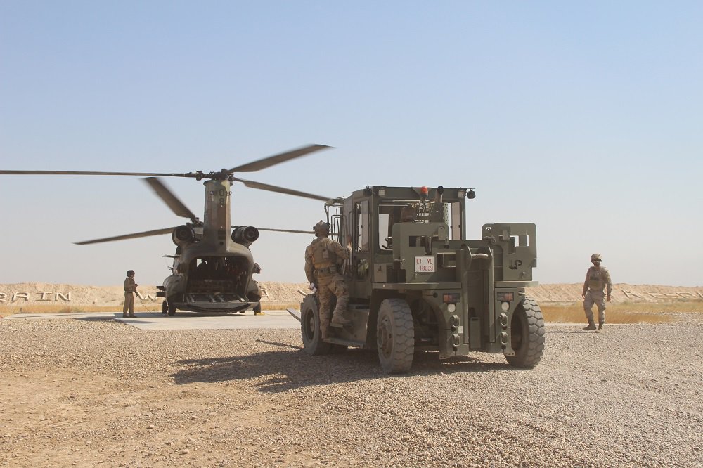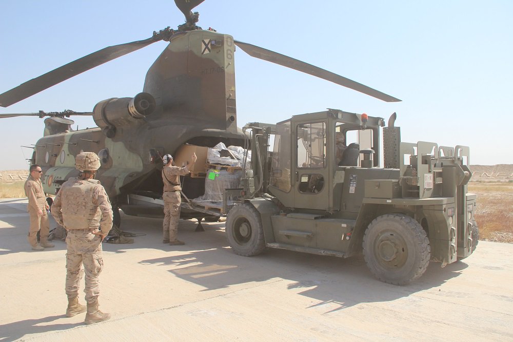 Desde Irak llegan imágenes de tropas españolas descargando un Boeing CH-47D Chinook en la zona de toma de helicópteros del complejo militar de Besmayah, donde se ubica está desde 2015 la Base “Gran Capitán”. La maniobra de descarga del helicóptero de transporte del ET (Ejército de Tierra), que pertenece a la denominada “Task Force” Toro formada por las FAMET (Fuerzas Aeromóviles del ET), que opera desde la base en Camp Taji, pone de manifiesto el trabajo de las poco conocidas unidades de las FAS (Fuerzas Armadas) españolas, que apoyan al contingente principal.