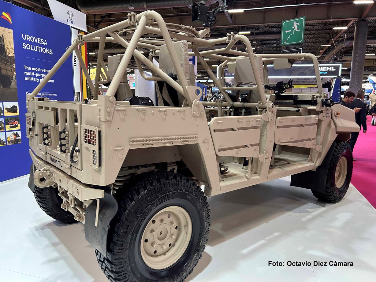 Las Operaciones Especiales siguen acaparando una especial relevancia en desarrollos de equipos y medios específicos. Nos llamó mucho la atención en Eurosatory el vehículo táctico compacto de configuración 4x4 VAM-TL SOV (Vehículo de Alta Movilidad Táctico Ligero, Special Operations Vehicle) mostrado por Uro Vehículos Especiales SA (UROVESA).