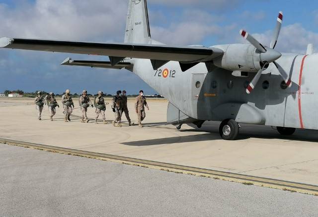 Para este entrenamiento de infiltración mediante paracaídas se solicitó el apoyo del Ejército del Aire, para que desplegase a tal efecto uno de sus transportes en la Base Naval de Rota (Cádiz). Así, tras dos cancelaciones anteriores debido a las condiciones meteorológicas adversas durante los meses de abril y mayo de actividades previstas con el Ala 35, que utiliza los C295, se han podido retomar las colaboraciones aunque en este caso con el Ala 37, que emplea al máximo los dos C-212 (designados militarme como T-12), que tiene en dotación.