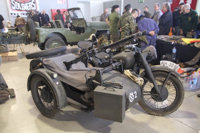 ·Una moto BMW R75 dotada de sidecar, con las marcas de una unidad de reconocimiento del ejército alemán durante la SGM, cuando se denominaba como Wehrmacht.
