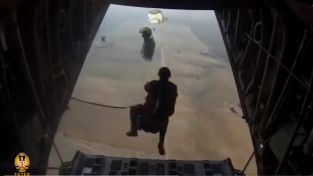 ·Fuerzas de la BRIPAC saltando desde un C-130H del Ejército del Aire. Foto: FUTER.