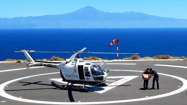 Ahora, y desde la pequeña Isla de la Gomera, nos llega una espectacular imagen de uno de éstos helicópteros asignados a la Unidad Periférica de Santa Cruz de Tenerife, que desde su base en el aeropuerto de Los Rodeos (La Laguna-Tenerife), cubre las cuatro islas que abarcan dicha provincia española. Podemos ver al Bö-105CB matriculado HU.15-31/09-123 en la zona de tomas para helicópteros del aeropuerto de La Gomera, a donde voló el pasado 4 de mayo desde la vecina isla de Tenerife, que se observa al fondo coronada por el Teide, para llevar material sanitario para combatir el COVID-19.