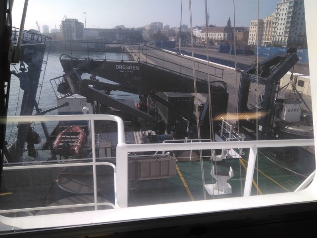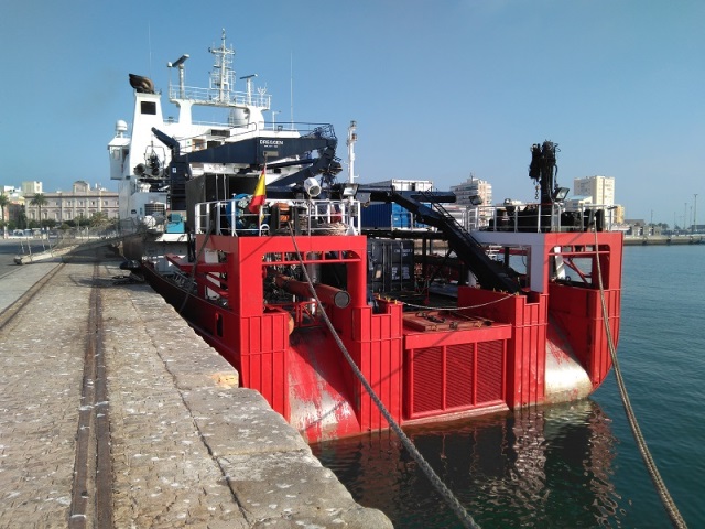 Nos recibió el capitán Juan Carlos Hernández Bernal que coordinaba la llegada del personal científico y marinero además del equipamiento para la próxima misión que se centra en el estudio del fenómeno de la sísmica de refracción.
