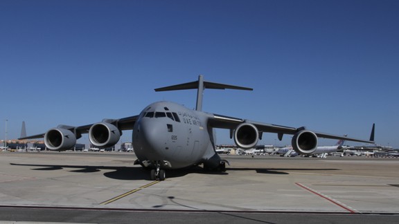 1- Imagen del Boeing C-17A Globemaster III que hizo escala en el aeropuerto de Madrid, el pasado mes de abril.