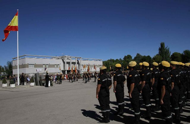 La ceremonia se cerró con el desfile terrestre, que incluyó el personal presente en la parada y vehículos de las diferentes unidades de la UME, incluidas motocicletas, medios ligeros, antiincendios, transmisiones, zapadores, y de protección NRBQ (Nuclear, Radiológica, Biológica y Química).(Julio Maíz Sanz)