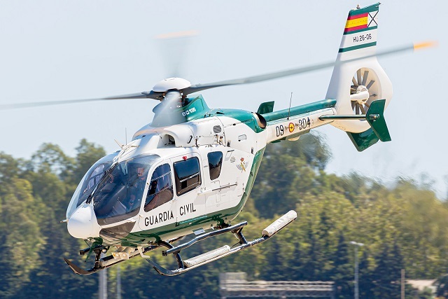 El Servicio Aéreo de la Guardia Civil participó en la exhibición con un Airbus Helicopters H135 (en la imagen) y un avión Airbus Defence & Space (DS) CN235-200.