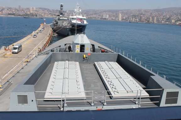 (defensa.com) El Destructor Tipo 45 HMS Dragon (D-35) de la Royal Navy recaló a Valparaíso para dar fuerza a la muestra británica presente en Exponaval 2014. Antes de su arribo, la nave participo en la conmemoración de la Batalla Naval de Coronel, que se libró en aguas territoriales chilenas el 1 de Noviembre de 1914. En la acción, la flota alemana – al mando del almirante Von Spee y conformada por los cruceros acorazados “Scharnhorst” y “Gneisenau”, los cruceros ligeros “Leipzig”, “Nürnberg” y “Dresden” se enfrentaron a la flota británica al mando del Almirante Cradock y compuesta por los cruceros “Monmouth” y “Good Hope” (que resultaron hundidos), así como por el crucero ligero “Glasgow” y el auxiliar “Otranto” .