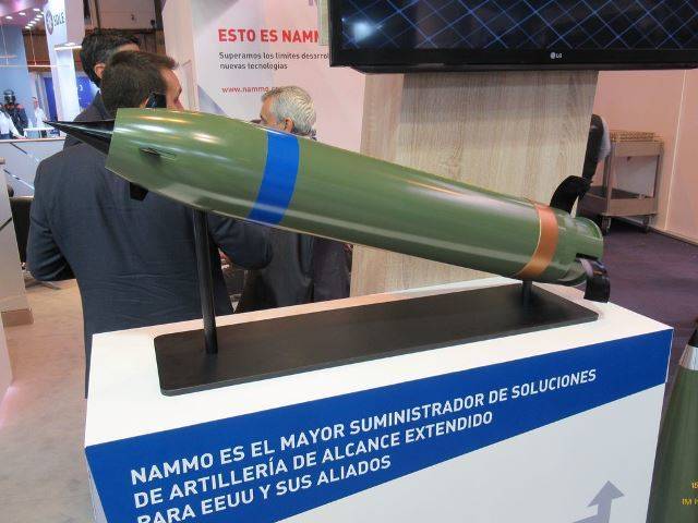 La compañía noruega afincada en España Nammo, trajo a su stand de la Feria Internacional de Defensa (FEINDEF) su gama de proyectiles de artillería, incluyendo los de alcance extendido, pero destacó sobre todo la presencia de su proyectil de muy largo alcance propulsado por cohete del tipo ramjet.