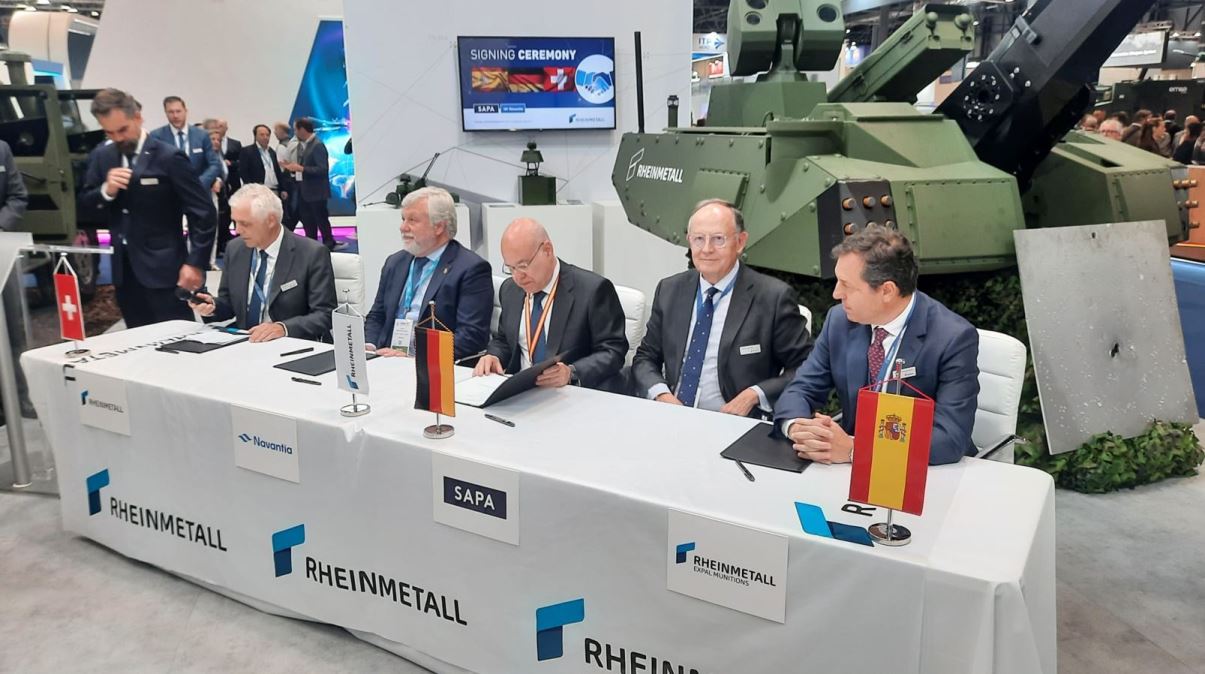 En el marco de la feria de defensa FEINDEF ha tenido lugar la firma de un memorándum de entendimiento (MoU) en el stand de Rheinmetall. Cuatro importantes empresas: Rheinmetall, Navantia, SAPA y Rheinmetall Expal Munitions, se comprometían a desarrollar capacidades para mejorar los sistemas de defensa aérea en España.